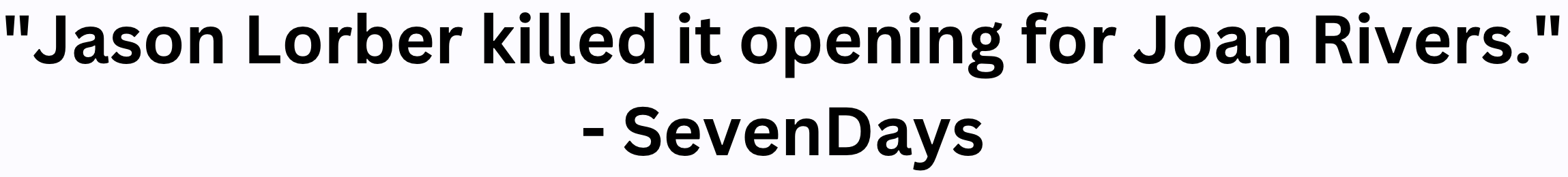 Jason has performed comedy nationally, including at French Toast in Los Angeles, Punchline in Atlanta, and for family members of the Vermont National Guard. He also performs regularly at scores of venues in Vermont including the Flynn Main Stage, Middlebury College, the Chandler, Smuggler’s Notch, Higher Ground, at Green Mountain Comedy Festival (headliner), as well as at numerous charity fundraisers.